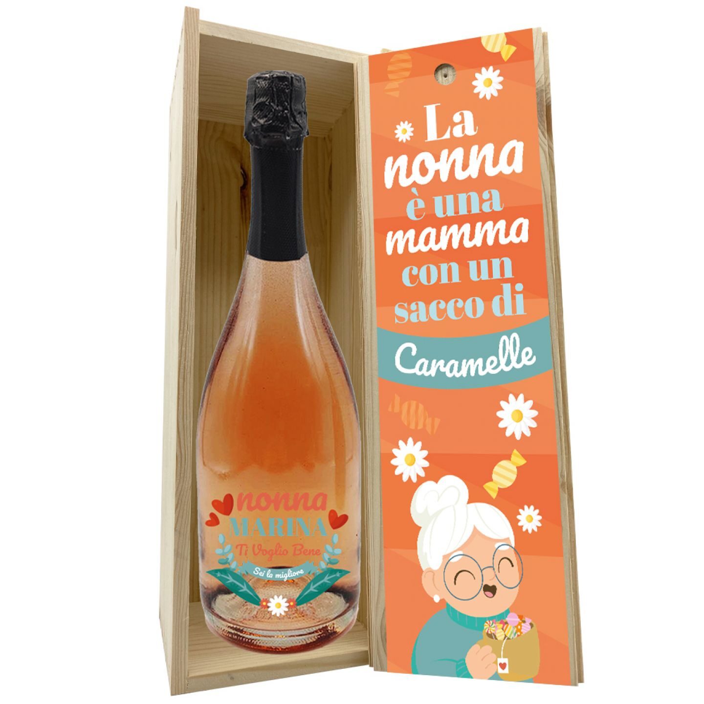 Prosecco Rosé – 0.75 lt. with wooden box – Original gift idea with personalized dedication for grandparents’ day. Add your message on the label and amaze your grandparents.