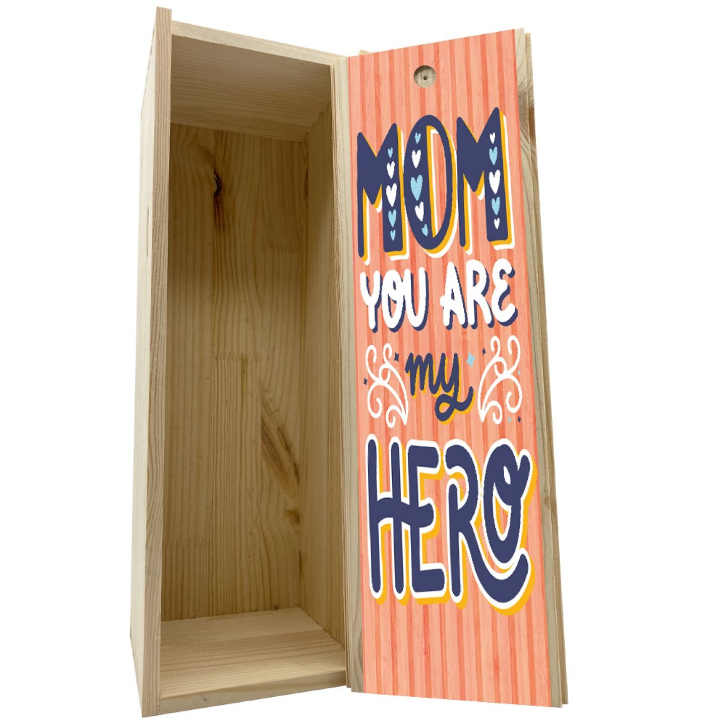 Cassetta in legno per bottiglia di vino standard – 0.75 lt. – personalizzata con adesivo a tema per la festa della mamma