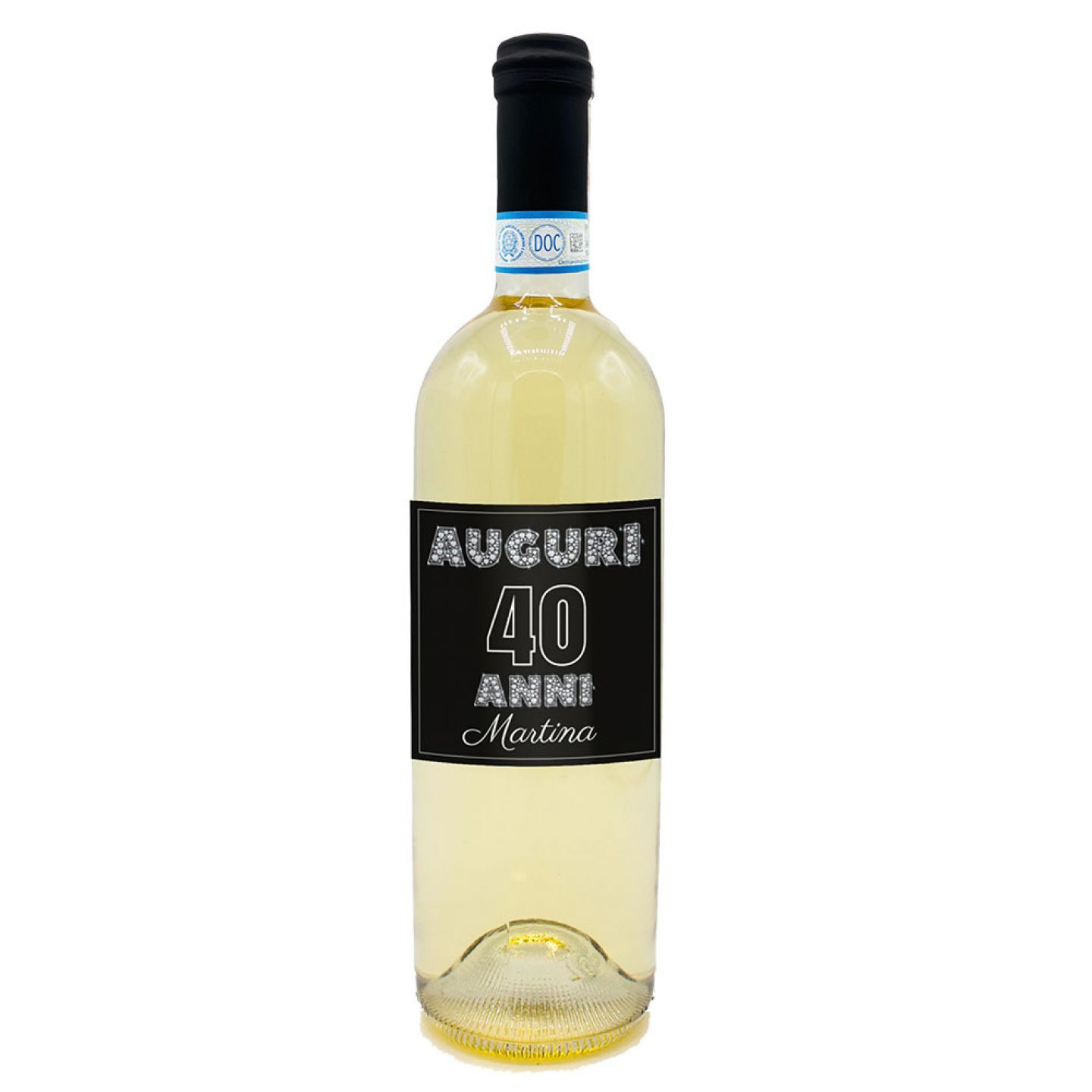 Pinot Grigio – 0.75 lt. – Originale idea regalo per compleanno 40 anni. Bottiglia personalizzata con dedica e con cassetta in legno. Sorprendi il festeggiato con un regalo personalizzato e originale!