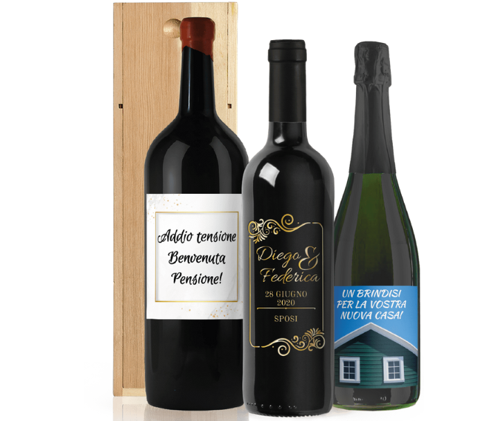 Se da una parte ci sono le feste e le ricorrenze che ogni anno ritornano, ci sono d’altro canto anche occasioni più importanti, che capitano poche volte nella vita. Anche in queste occasioni l’equazione è già scritta: occasioni importanti = idee regalo originali e auguri speciali. Per il matrimonio o per la laurea, per il battesimo, per la cresima o per la comunione, per la pensione o per una cerimonia o anche semplicemente per un compleanno con “cifra tonda” e in genere per tutte quelle occasioni speciali che non capitano tutti i giorni, le tue idee regalo dovranno essere all’altezza della situazione e le tue bottiglie personalizzate dovranno essere delle bottiglie personalizzate da lasciare tutti a bocca aperta e con il fiato sospeso: e allora sì che sarai sicuro di fare una bella figura! Allora davvero che le tue idee regalo diventeranno un ricordo indelebile di un momento importante. Un ricordo da conservare gelosamente per tutta la vita, perché se è vero che la felicità è fatta di attimi e di momenti che fuggono, è altrettanto vero che una bottiglia personalizzata “preziosa” rimarrà per sempre, ricordando a te e al festeggiato (o ai festeggiati) il momento di gioia, e ricordandoti allo stesso tempo anche che per le migliori idee regalo e per degli auguri originali e speciali, basta solo unire la semplicità all’eleganza.