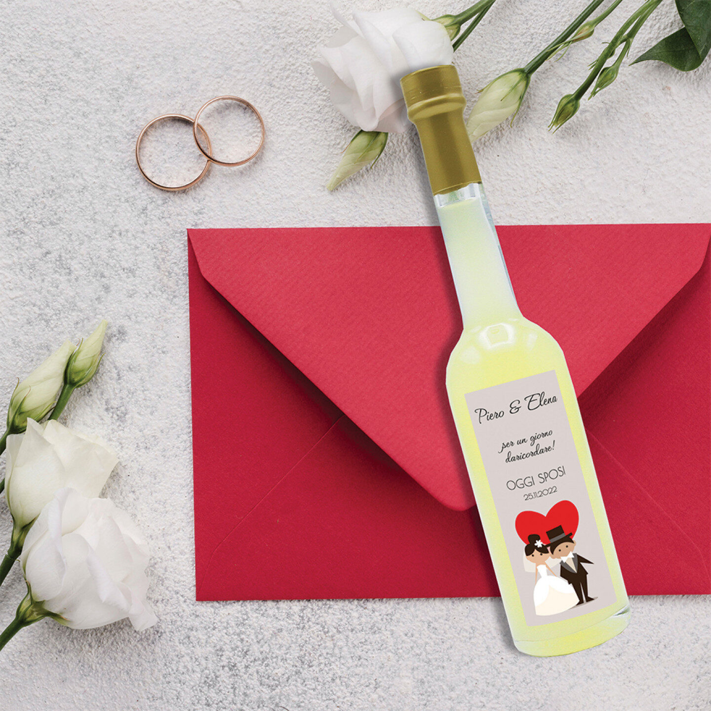 Liquore al limone – bomboniere gastronomiche 96 bottiglie mignon 0.10 lt. – Mini bottiglie liquore artigianale con etichetta personalizzata come idea per bomboniere di matrimonio e cerimonie
